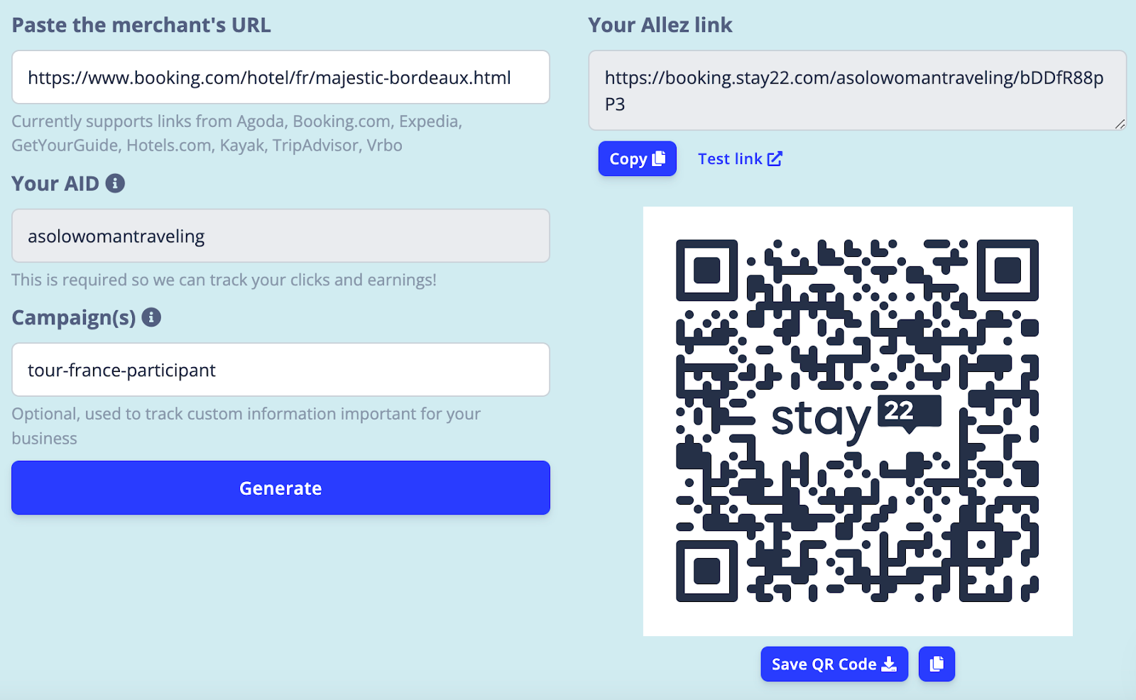 Because Stay22 links work with top booking platforms like Booking.com and Expedia, my guests could book instantly through trusted sites and I earned a commission automatically.